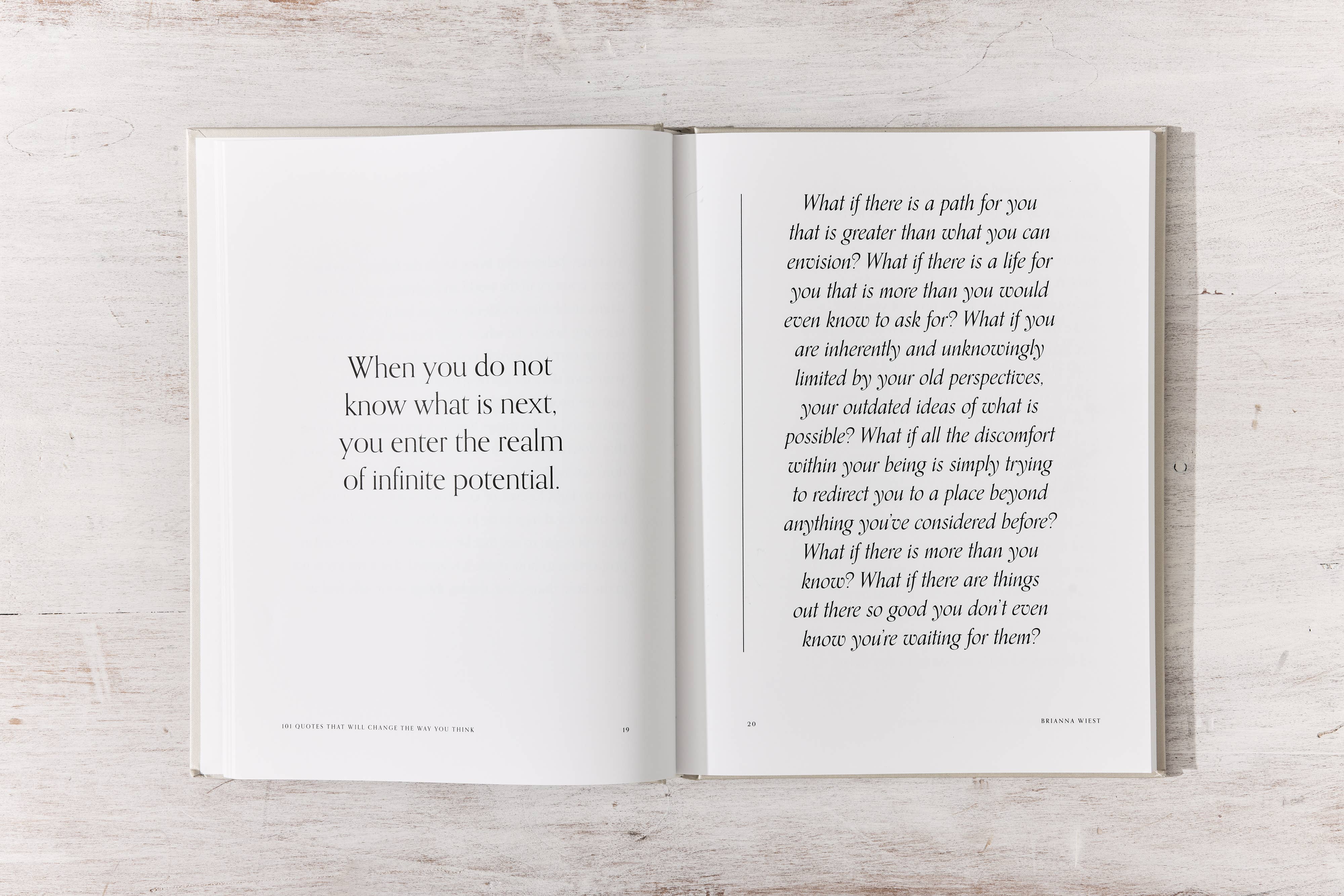 This beautifully crafted hardcover coffee table book encourages daily inspiration presenting words that speak directly to the soul. A collection of the most read quotes, passages, and poems from all nine of Brianna Wiest's books including "101 Essays That Will Change The Way You Think," "The Mountain Is You," "Ceremony," "Salt Water," "The Pivot Year," "When You're Ready, This Is How You Heal," and others.