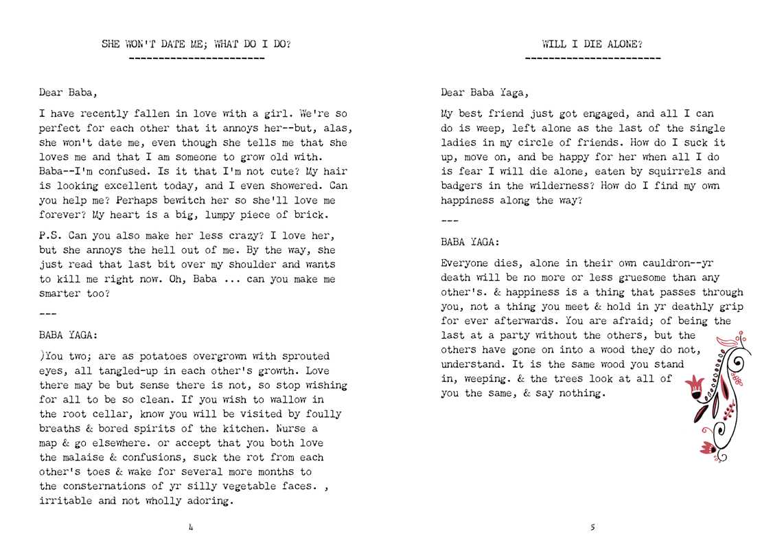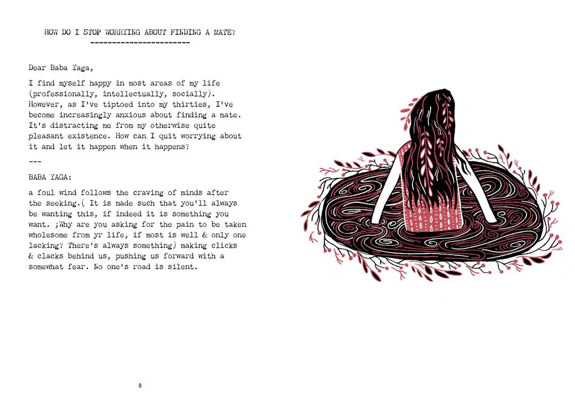 In age-old Slavic fairy tales, the witch Baba Yaga is sought out by those with a burning need for guidance. In contemporary life, Baba Yaga—a dangerous, slippery oracle—answered earnest questions on The Hairpin for years. These pages collect her most poignant, surreal, and humorous exchanges along with all-new questions and answers for those seeking her mystical advice.