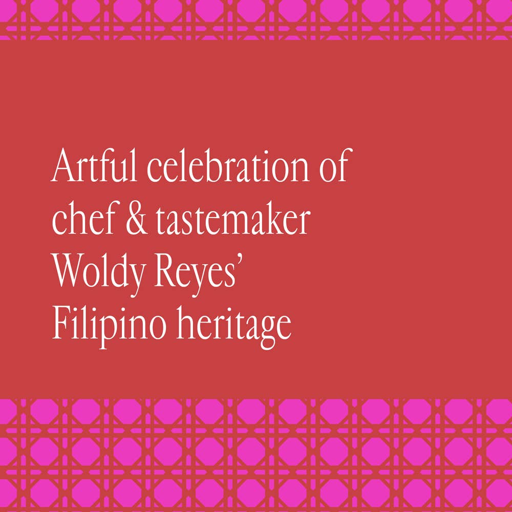 Growing up in Southern California as a first-generation Filipino American, Woldy Reyes felt like an outsider, always straddling two worlds. At home, his family ate adobo with rice, gathered in the kitchen to roll lumpia, and roasted a whole goat in the backyard to make kalderetang kambing (celebratory goat stew). At school, all he wanted was Lunchables and Flamin’ Hot Cheetos. It wasn’t until he discovered the power of food as a means of connection—to strangers and friends, to his heritage, and even to himself—that he began cooking in earnest and sharing his story through the dishes he made. His signature style, now beloved by his catering clients in New York City and beyond, highlights classic Filipino food but with a focus on local, seasonal produce and artful presentation.