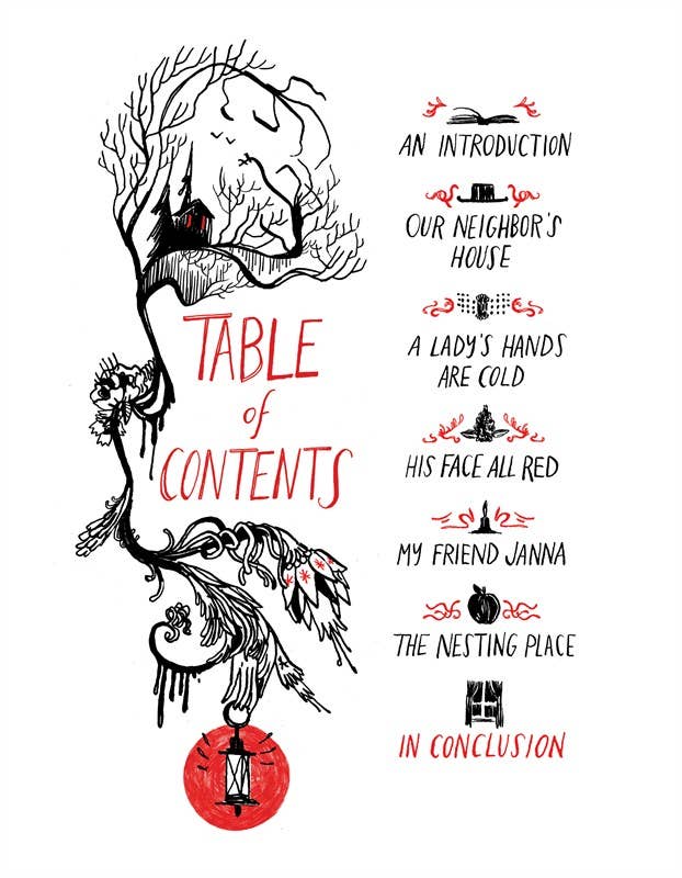 Journey through the woods in this sinister, compellingly spooky collection that features four brand-new stories and one phenomenally popular tale in print for the first time. These are fairy tales gone seriously wrong, where you can travel to “Our Neighbor’s House”—though coming back might be a problem. Or find yourself a young bride in a house that holds a terrible secret in “A Lady’s Hands Are Cold.” You might try to figure out what is haunting “My Friend Janna,” or discover that your brother’s fiancée may not be what she seems in “The Nesting Place.” And of course you must revisit the horror of “His Face All Red,” the breakout webcomic hit that has been gorgeously translated to the printed page.